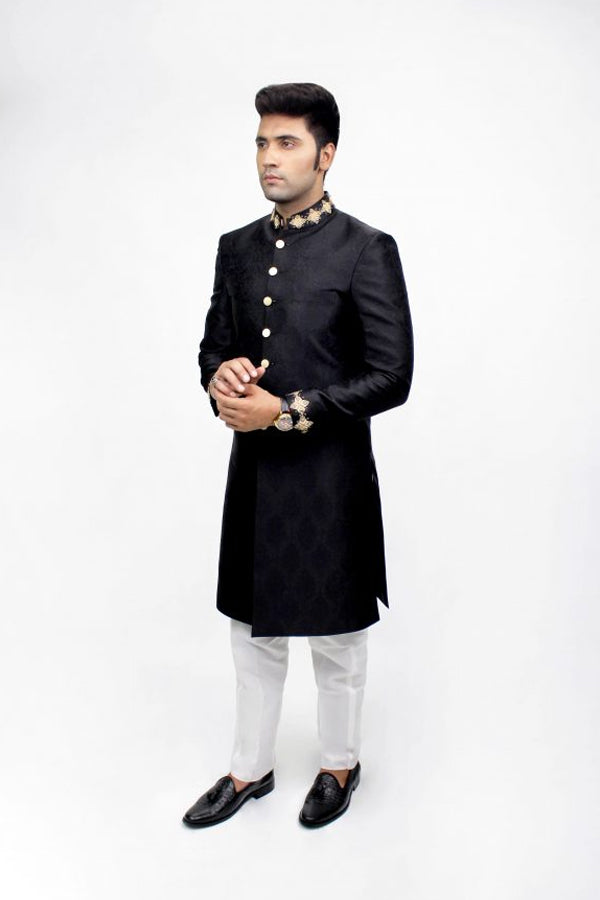 Checkmate Outfit delivers the best quality Sherwani by choosing quality fabrics, fine stitching techniques, sustaining splendid finish, fit, comfort and style.
